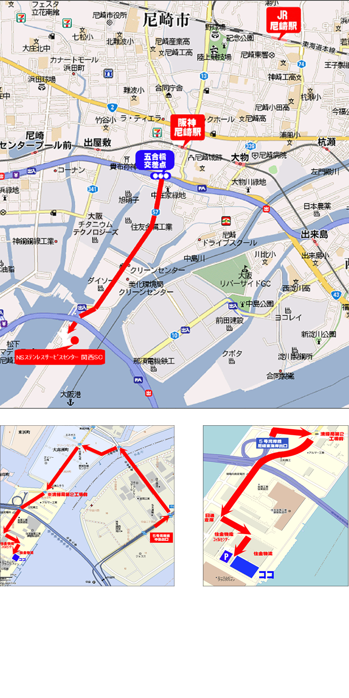 阪神「尼崎駅」よりタクシー10分 または バス15分「尼崎港」停留所より徒歩5分