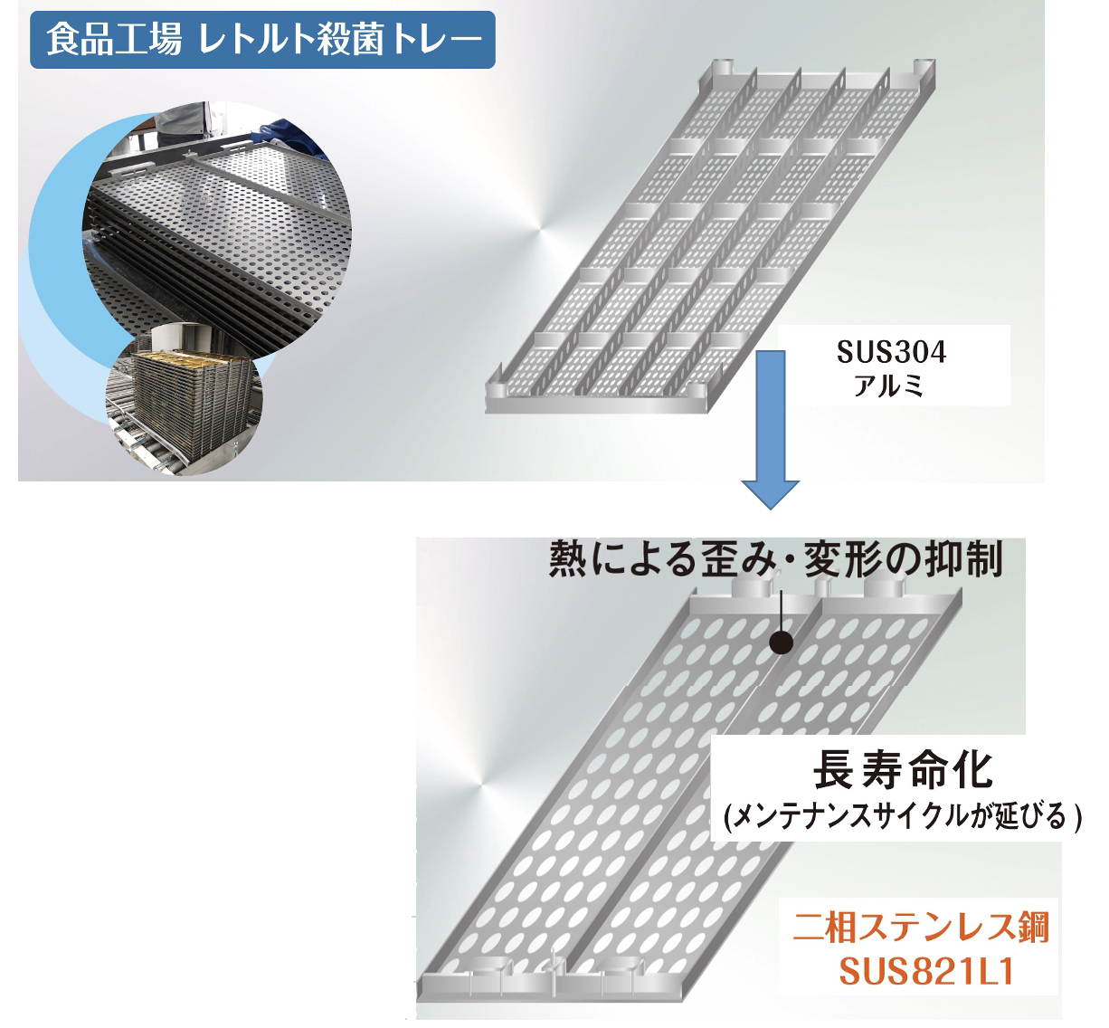 【ソリューション】強度・熱変形に優れた二相ステンレス鋼への材質変更を提案