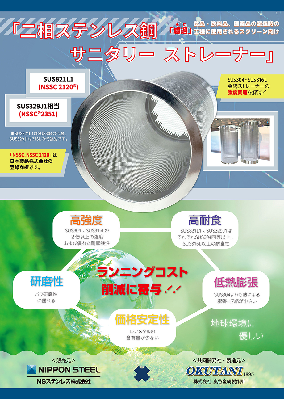 高機能ステンレスとは汎用鋼種の304や430と比較し、高強度・高耐食のステンレスを指します。